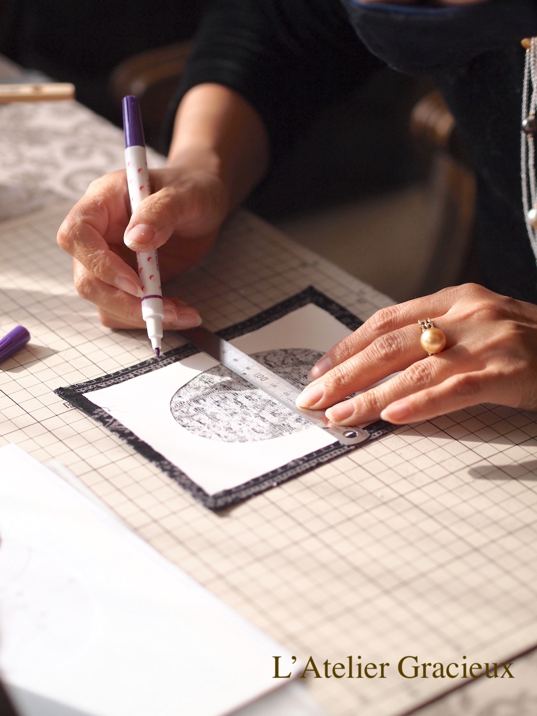 レッスン半ばで、方眼紙に、コンパスと定規で、