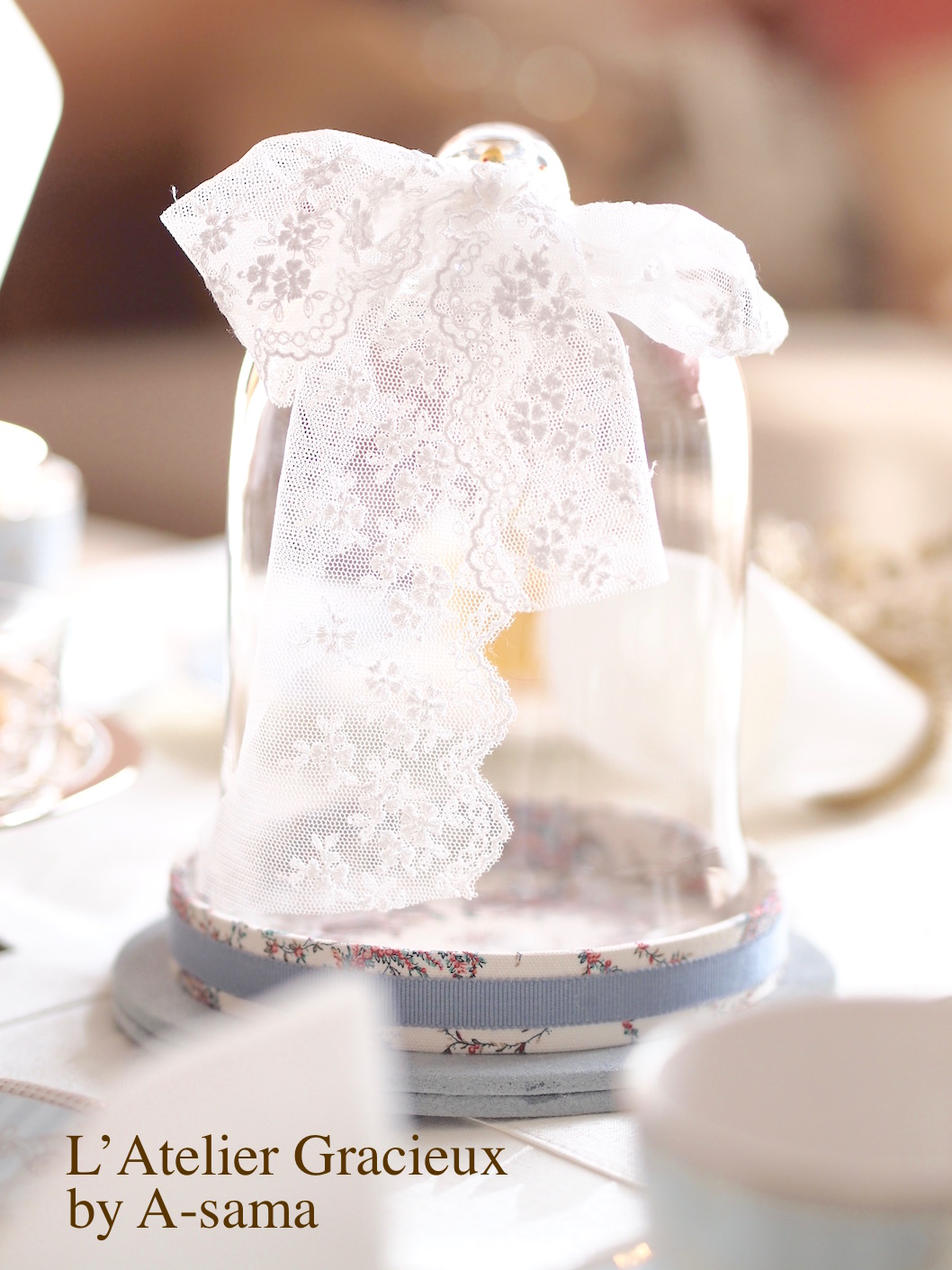 グラストップは、お好きなリボンやレースで、リボンボウにされるとのこと!
