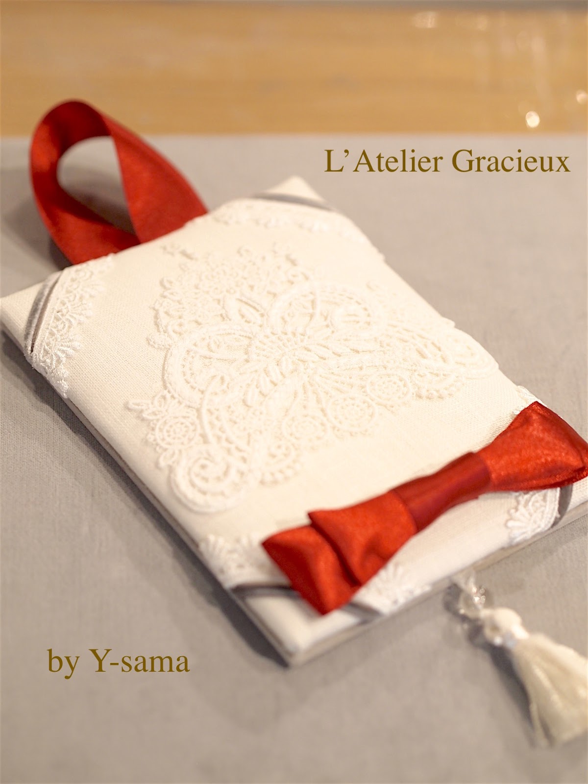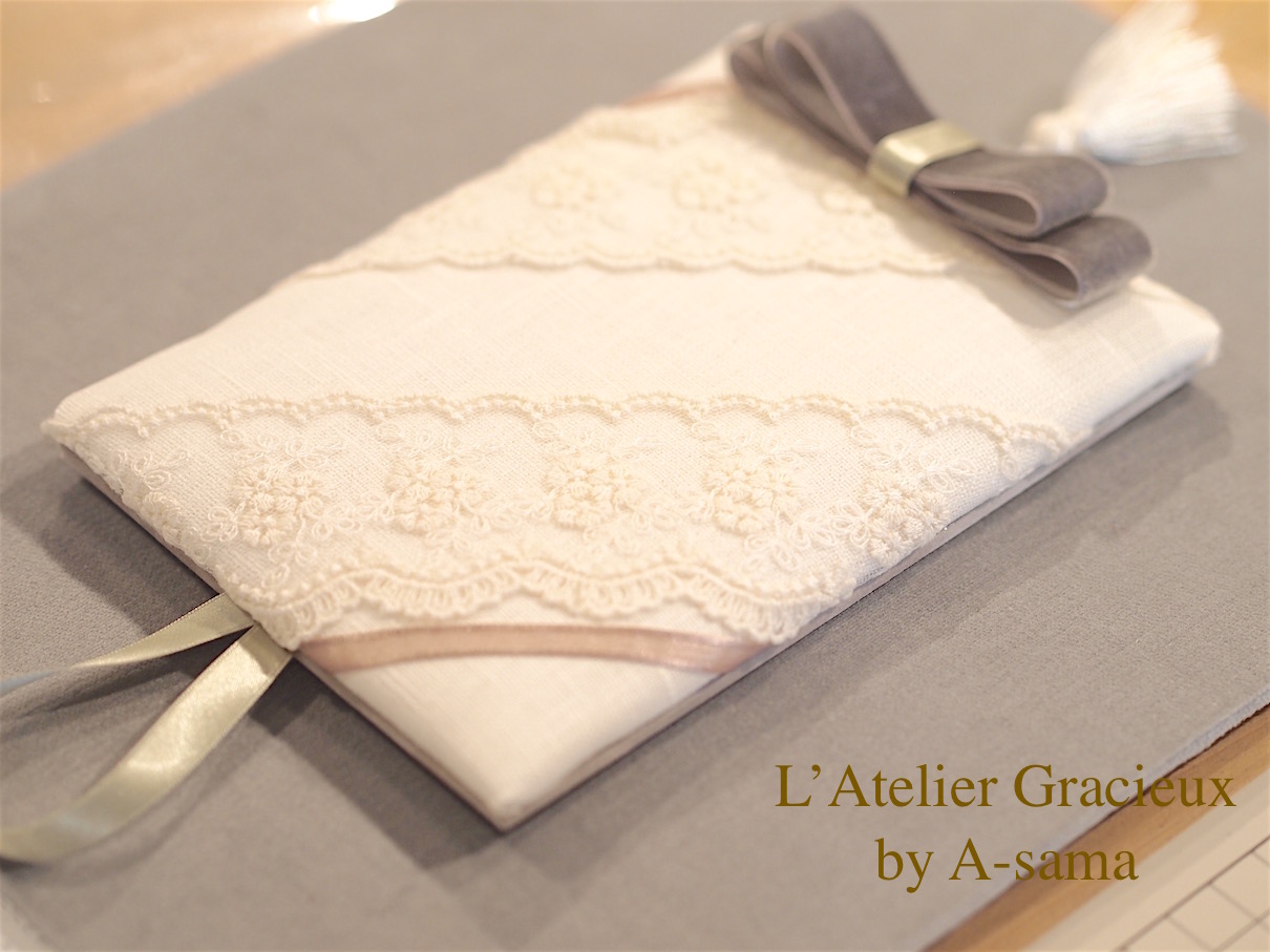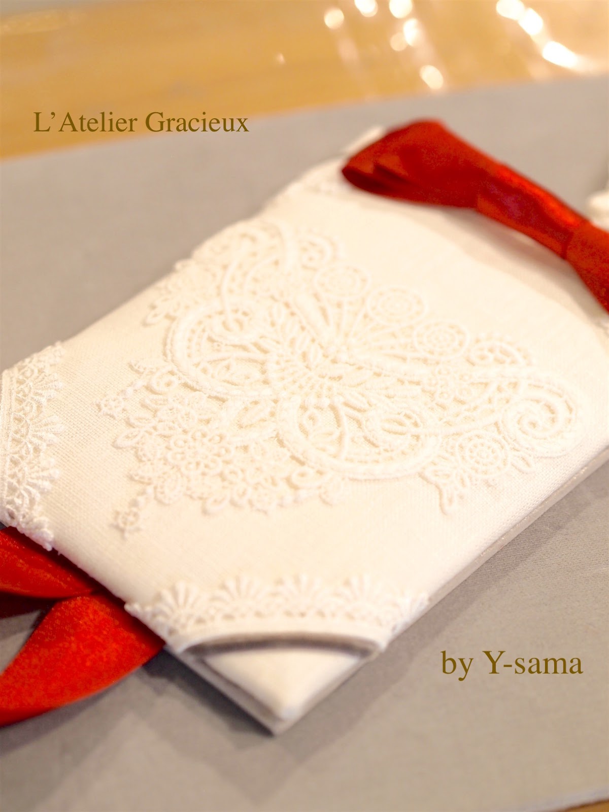 カードホルダーとなるリボンも、レースを生かすために2本にされ、素敵でした!