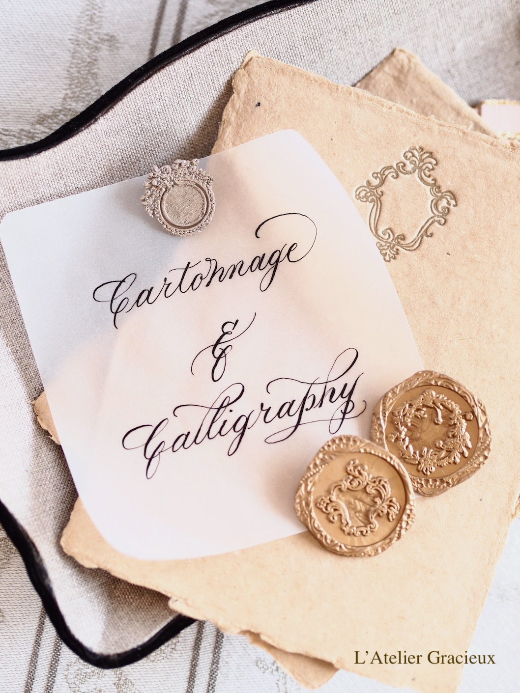 カリグラフィーの視点から生み出すカルトナージュ 、
