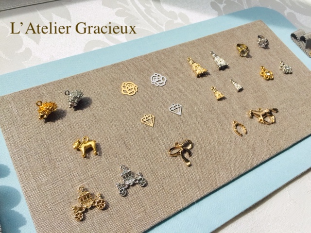 チャームやレザーリボンボウなどの装飾・配置は、お好みで自由に制作頂けます。