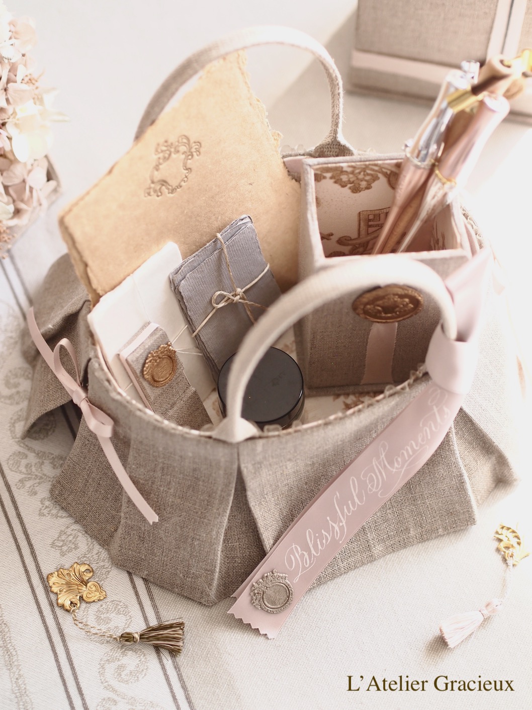 Oval Basket with Pleated Skirt (Cartonnage & Calligraphy) プリーツスカート付きのオーバルバスケット