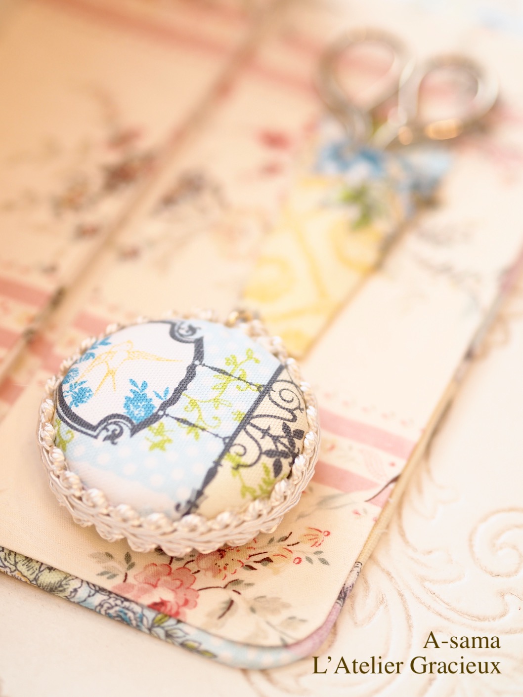 発色が綺麗な可愛いフレンチパターンのパッチワーク風生地に、