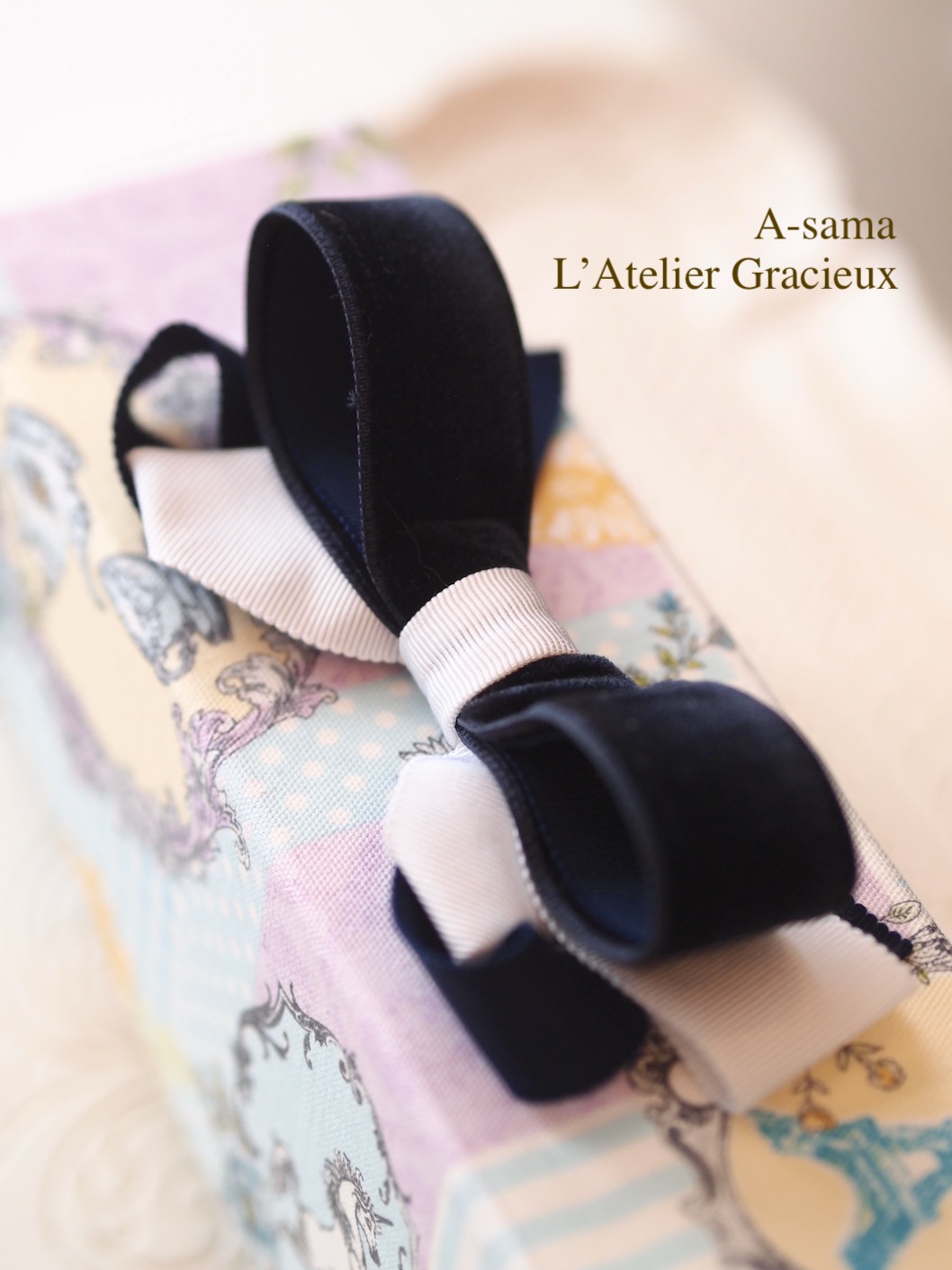 清楚なNavyのVelvet とWhite Grosgrain Ribbonを組み合わされ、