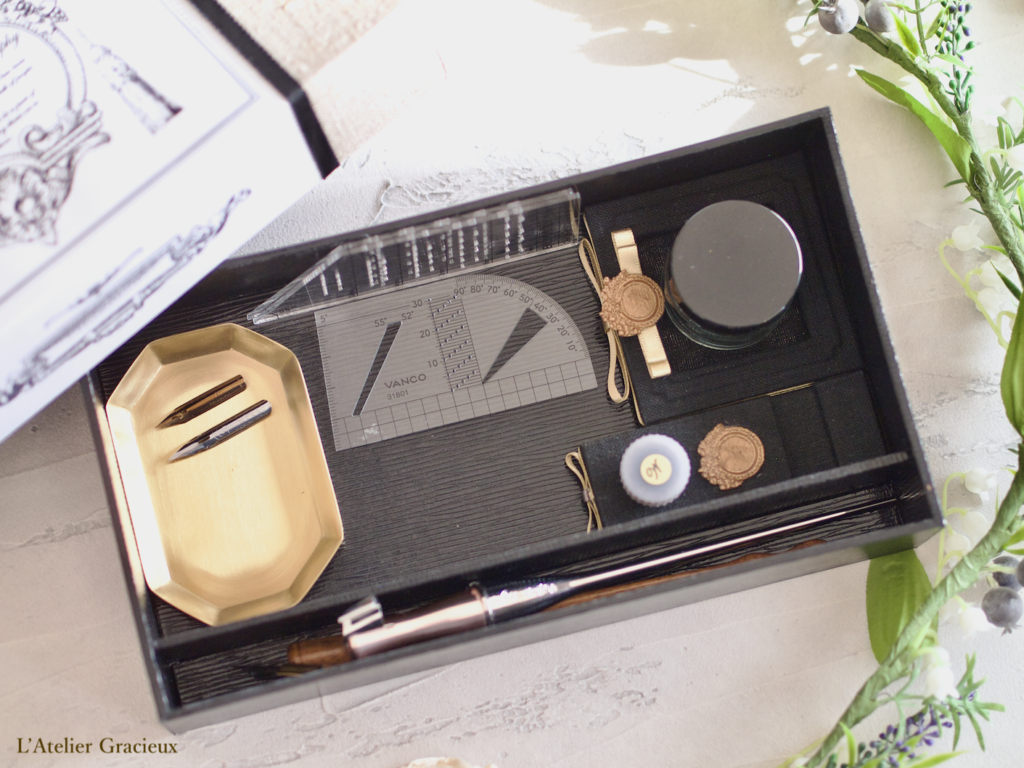 The Penman’s Writing Box – ペンマン(手書きを愛する人のため)のライティングボックス (Cartonnage & Calligraphy):Boîte a écriture