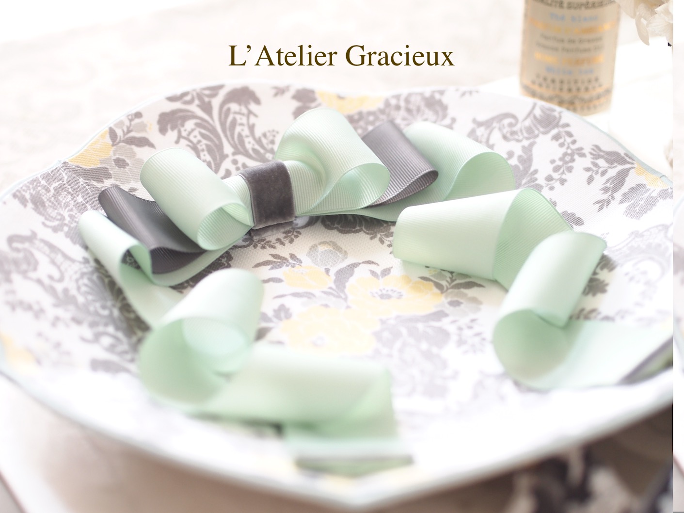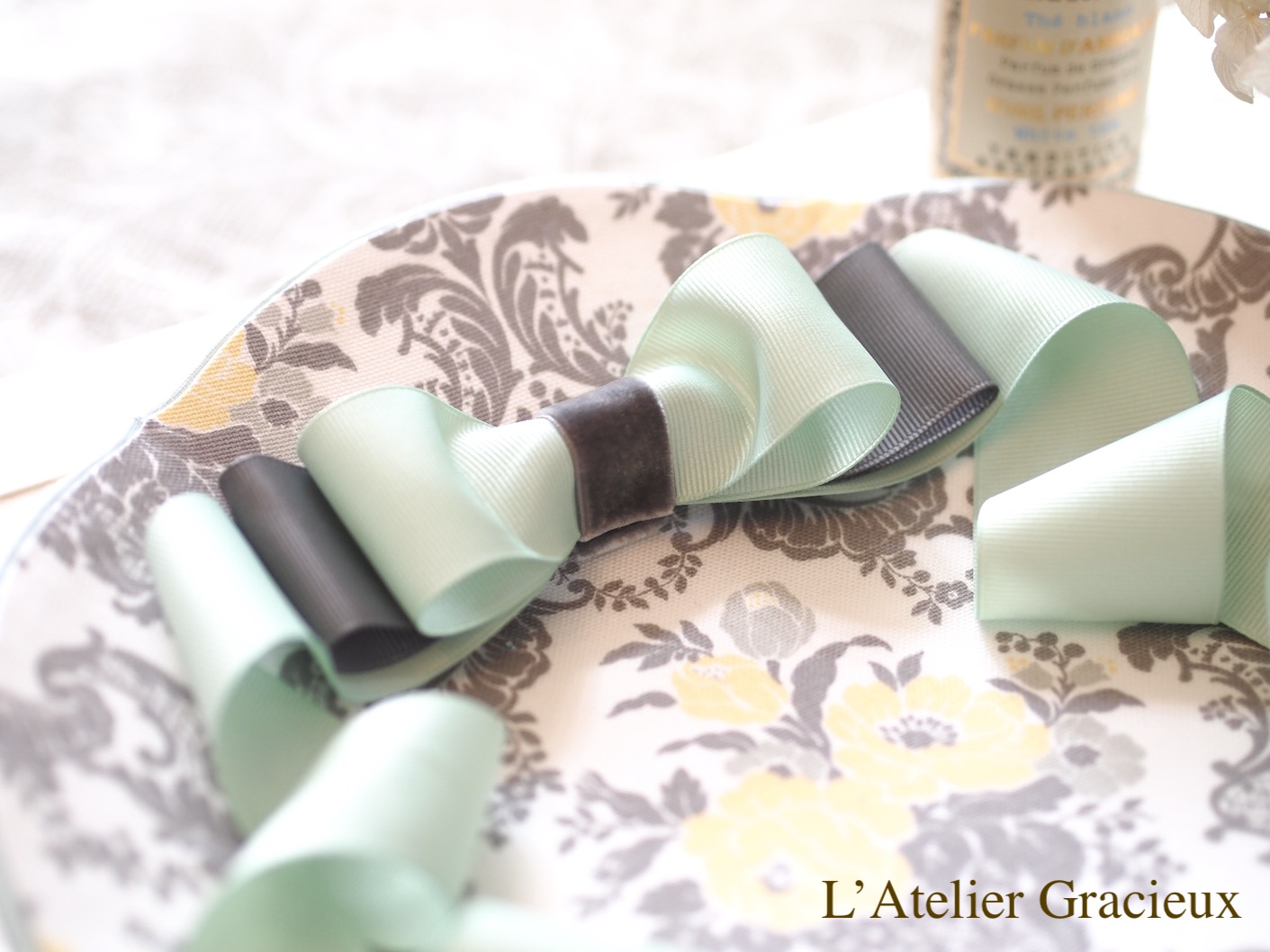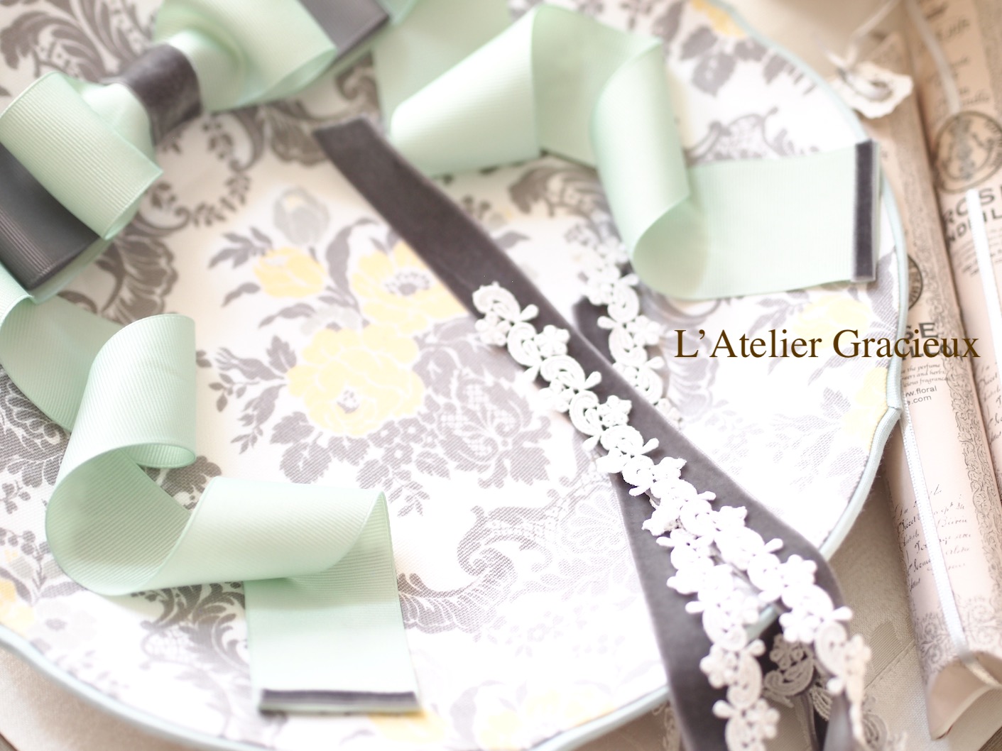 私の定番となっているミントグリーンとグレイのグログランリボンに、