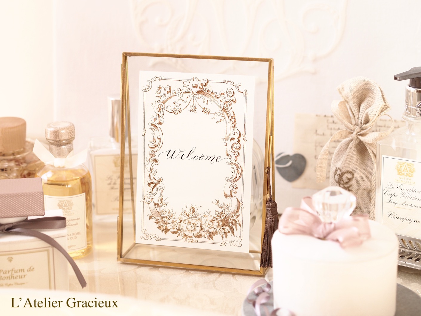 マットゴールドの縁取りと涼しげなグラス感が絶妙で、