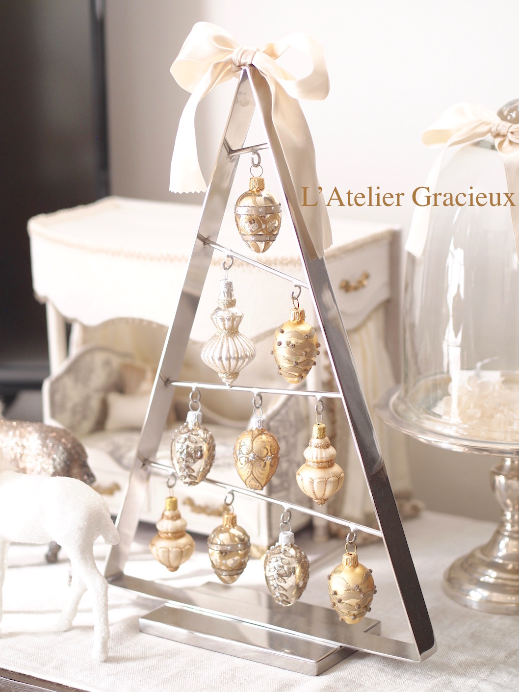 こちらもUSで購入した、メタルのツリーとエッグ型の可愛いオーナメントたち。