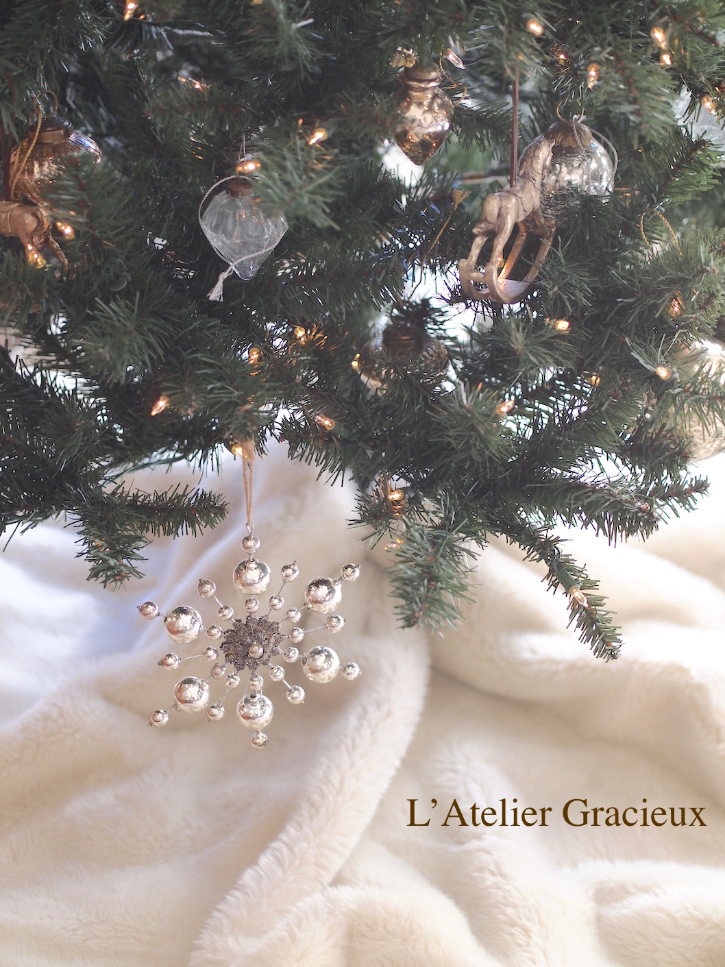 グラスボールやオーナメントは、大好きな Restration Hardwareで購入しました。